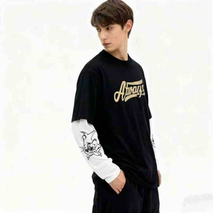 捡漏326件假两件长袖可爱图案t恤男潮牌嘻哈春秋棉T上衣,独立包装,码数M-2XL,分货加1,货号115#70。 货号:1323