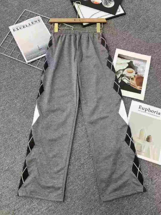 ☕️男女同款运动休闲裤复古几何印花宽松慵懒超火的高...