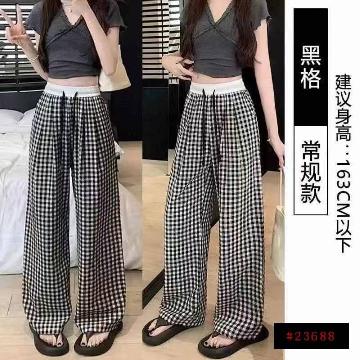 下身阔腿长裤[太阳]全清10.8,2800件,均码,棉麻理想白腰头格子阔腿裤女夏...