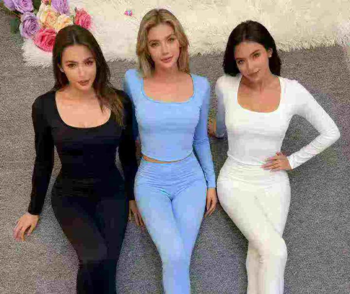 5851件,女早秋季纯色百搭U领长袖T恤上衣女弹力修身高...