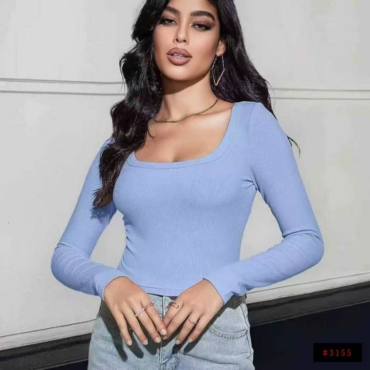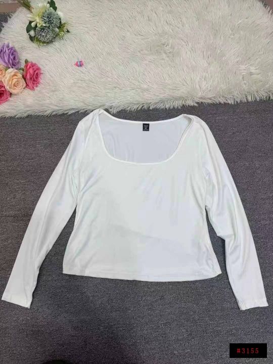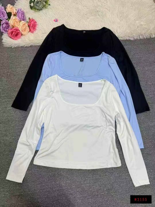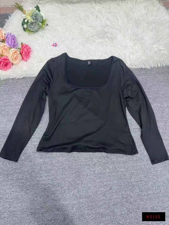5851件,女早秋季纯色百搭U领长袖T恤上衣女弹力修身高腰显瘦打底衫,一包3件3个色包装,码数XL-4XL,全清3.8元,分货➕1@_@