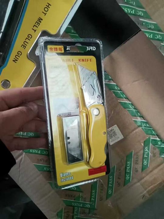美工刀壁纸刀胶枪等5-6吨。大部分是美工刀、刀片,按...