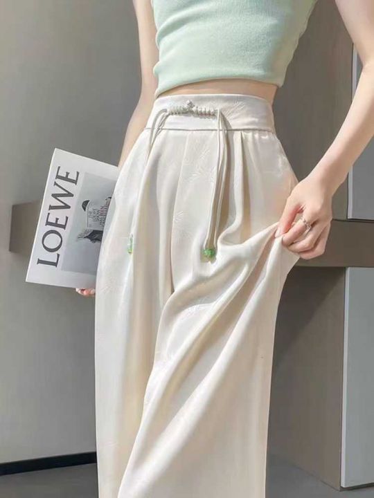 新中式国风醋酸缎面阔腿裤女高腰显瘦垂感直筒休闲拖地裤 1683条全清12.8元 ...