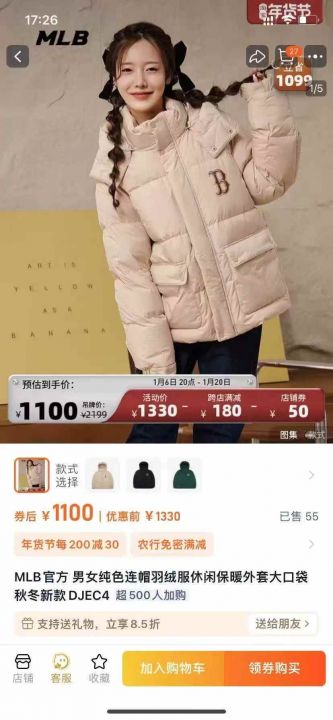MLB官方 男女纯色连帽羽绒服XS~2XL , 100件。 ...