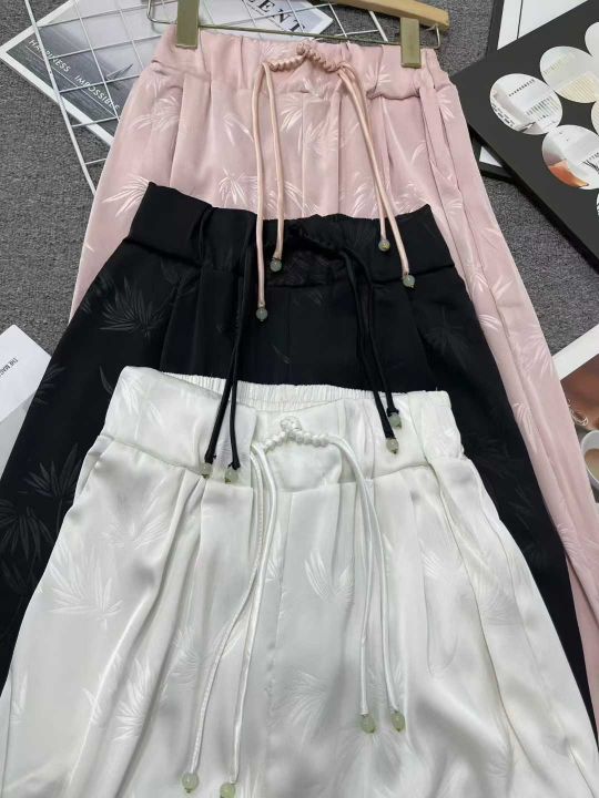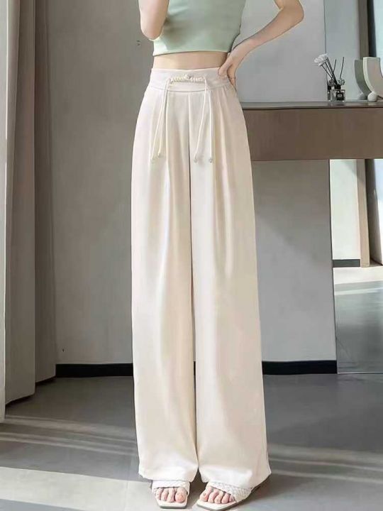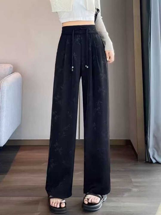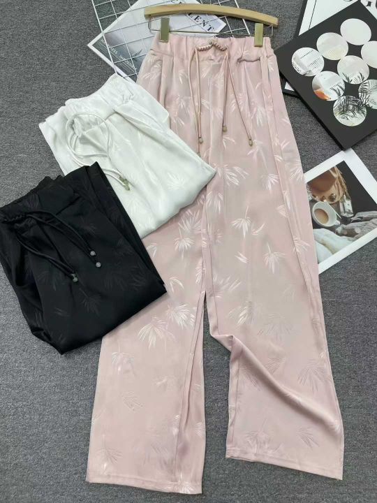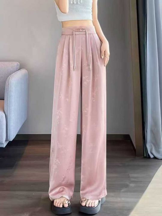 新中式国风醋酸缎面阔腿裤女高腰显瘦垂感直筒休闲拖地...