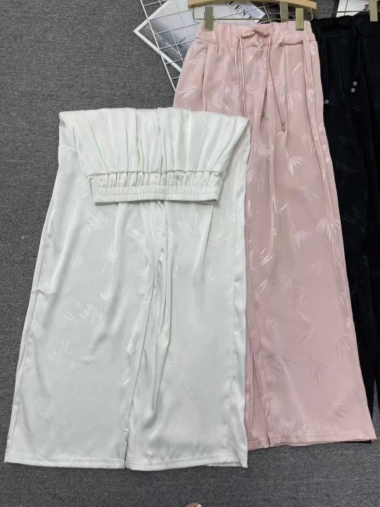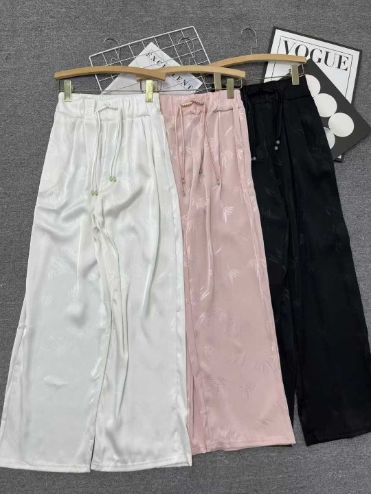 新中式国风醋酸缎面阔腿裤女高腰显瘦垂感直筒休闲拖地裤 1683条全清12.8元 分货13.8元 ,颜色三个色,码数S到XXL,精品独立包装,裤子有口袋,热销爆款