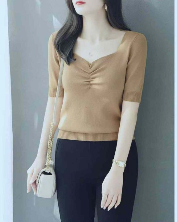 夏季新款温柔风宽松百搭冰丝复古V领针织T桖,独立包装均码面料软糯舒适弹力大,330件,全清5.9元超低价秒杀!分货加一!