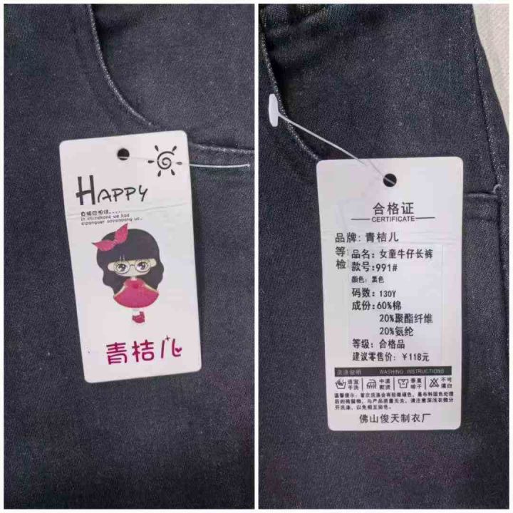 120件左右品牌中大女童弹力牛仔裤,整款单色,码数110-160,大码多,独立包装带吊牌。 货号:1323