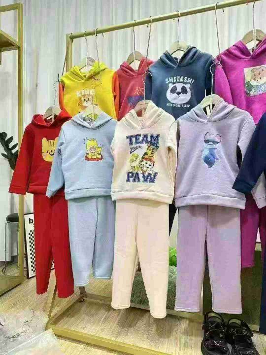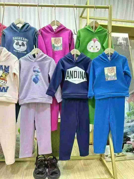 [太阳]9.9元清8000套!长袖卫衣套装两件套圆领套装,连帽套装!加绒连帽卫衣卫裤,童装3到8岁,M到Xl,整首齐码!卫衣棉!多色多图案!100套10.5元!