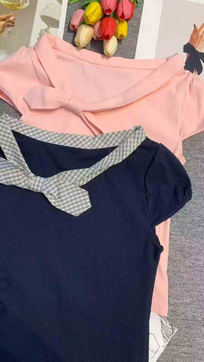 韩系甜美撞色水手领绑带收腰显瘦上衣,[爱心]165件左右,粉色为主,款号#1632,码数S-L,穿70-110斤,万佳档口货,原包装️无瑕疵,[666]实体店品质。 货号:1323