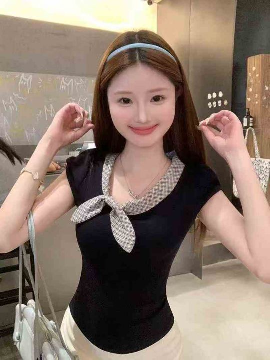 上新全清:7.8一件韩系甜美撞色水手领绑带收腰显瘦上...