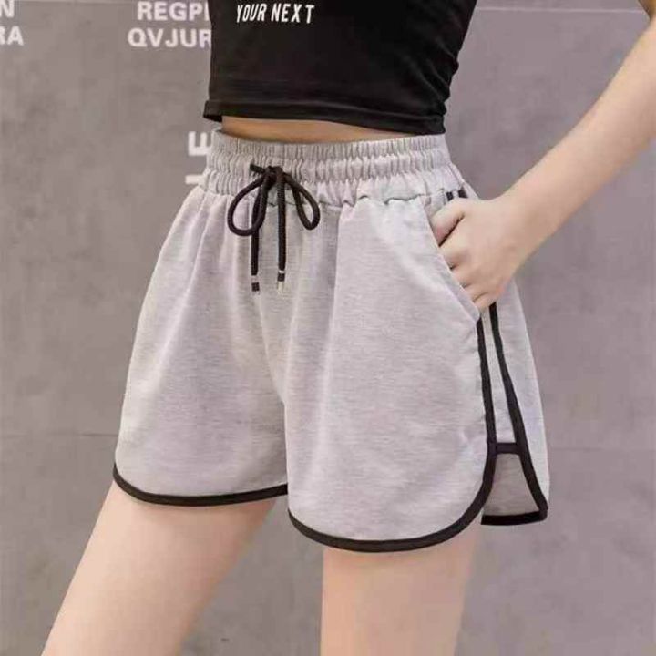 [月亮]:美式复古撞色杆条休闲辣妹棉质短裤