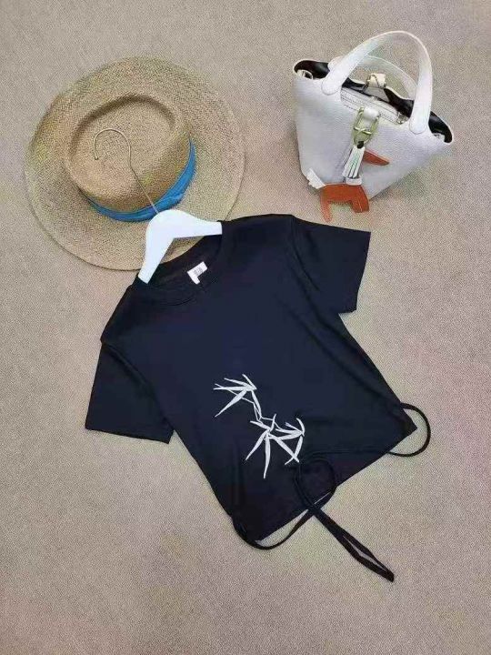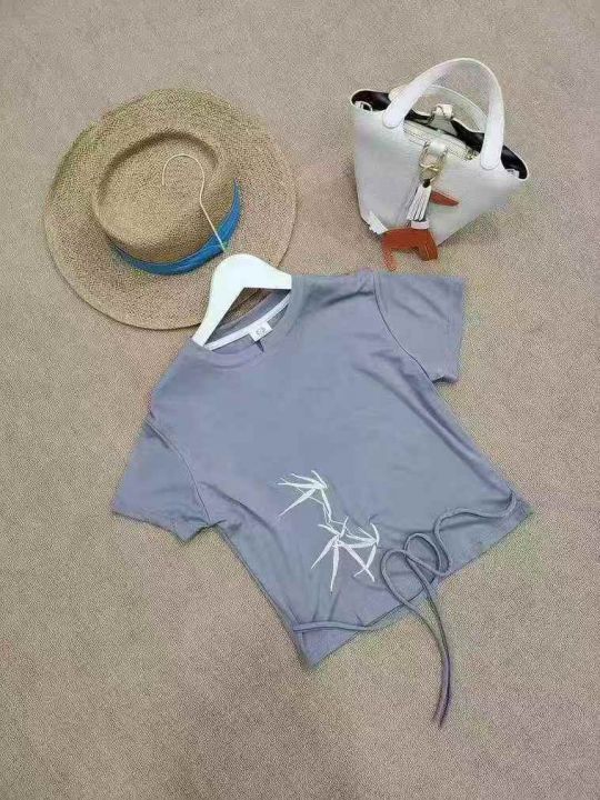 [月亮]:新中式刺绣绑带设计辣妹包边T恤
