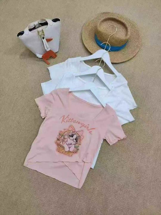 [月亮]:6.9清1900件[月亮]:不规则猫咪印花辣妹短袖T...