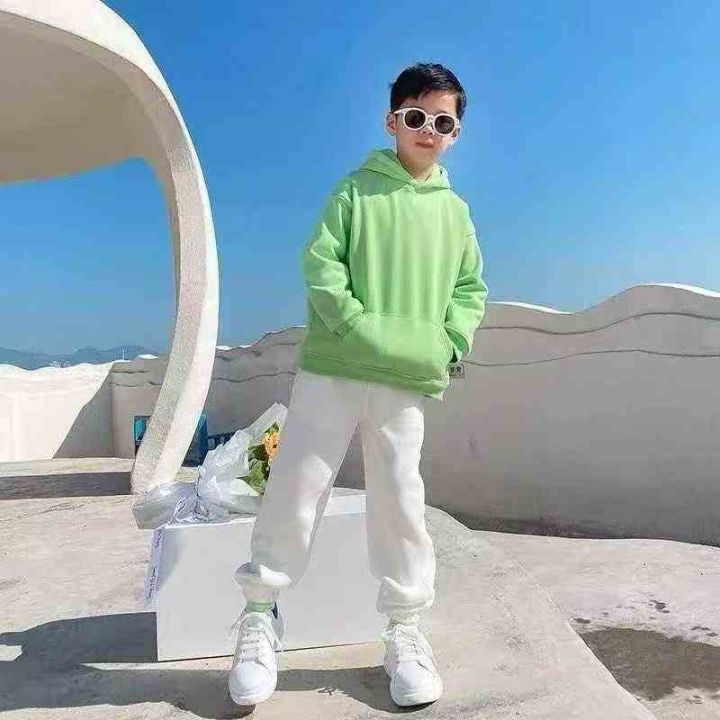 童装加绒连帽棉质卫衣,数量300件,码数100-150,独立包装,货品干净,果绿色为主。