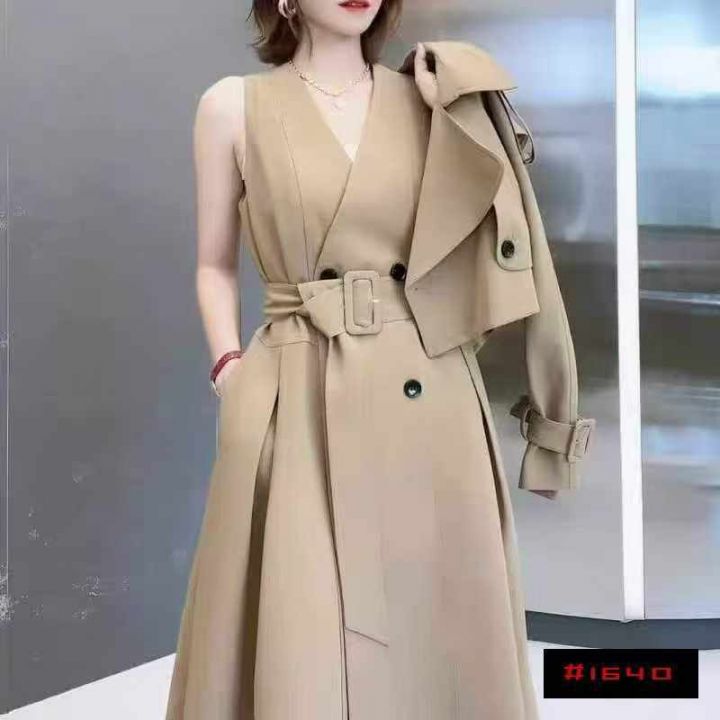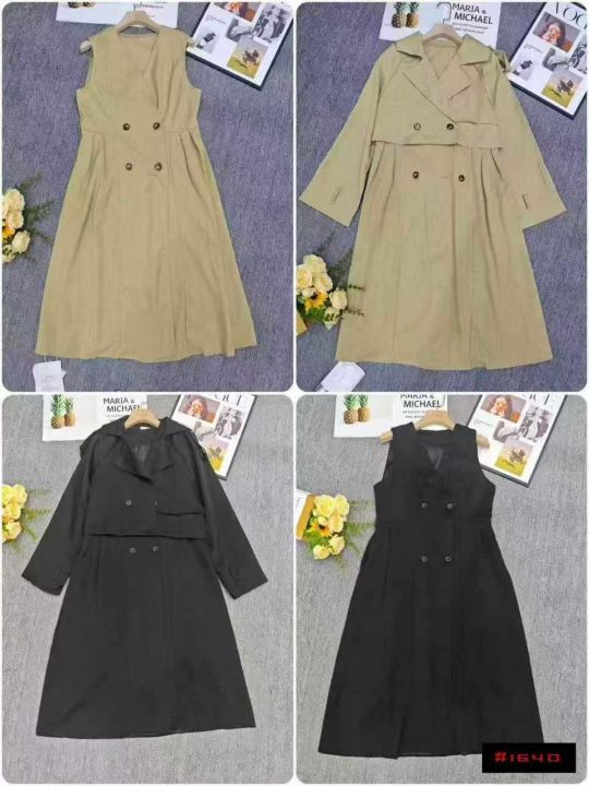 天猫仓回收73套温柔韩系成熟风优雅气质女士风衣连衣裙套装,码数L-4XL。两件套版型质量都很好,裙子有口袋,有独立包装。超低价秒杀!@_@
