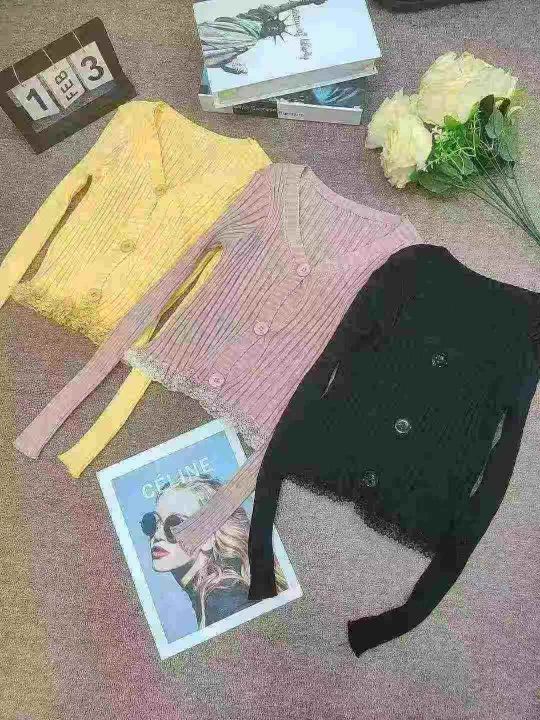 韩版2025chic长袖针织开衫女装外套毛衣春秋新款修身蕾丝边开衫,独立包装,均码,950件左右,清8.5,分➕1。 货号:1303