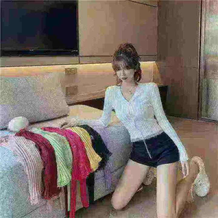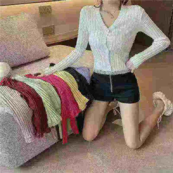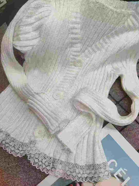 韩版2025chic长袖针织开衫女装外套毛衣春秋新款修身蕾丝边开衫,独立包装,均码,950件左右,清8.5,分➕1。 货号:24862