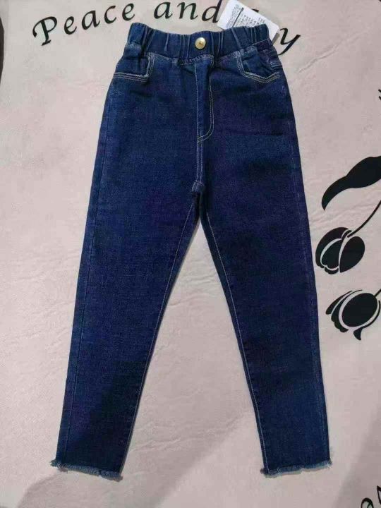 255件左右品牌中大女童小脚弹力牛仔裤(其中加绒黑色36件,)码数110-170,独立包装带吊牌。 货号:1303