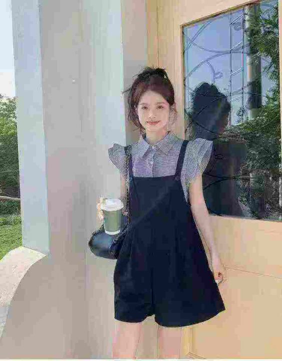 夏季新款学院风冰丝顺滑减龄网红休闲背带西装短裤,独...