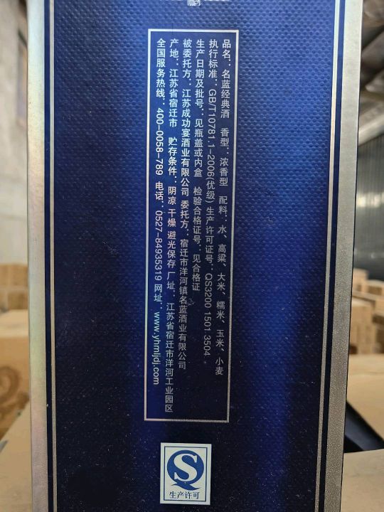 17年洋河名蓝经典、42度纯粮优级白酒……