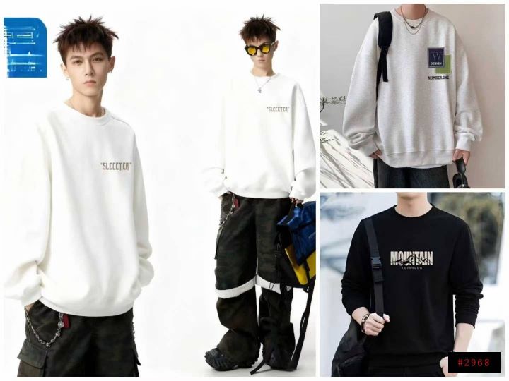 750件左右华棉男装圆领卫衣,码数M—3XL,后领包边到肩,新款百搭简约印花,独立包装@_@