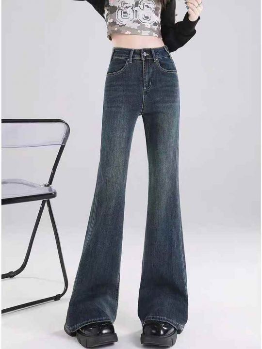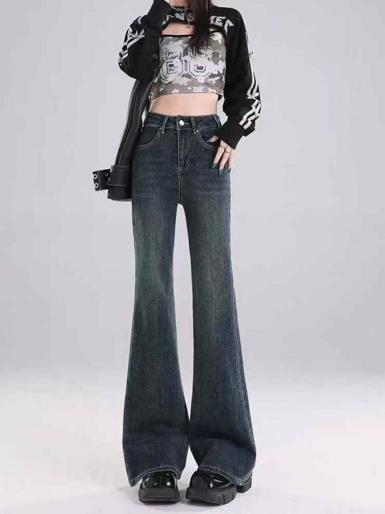 秋冬新款洗水棉网红复古蓝微喇叭牛仔长裤,独立包装带...