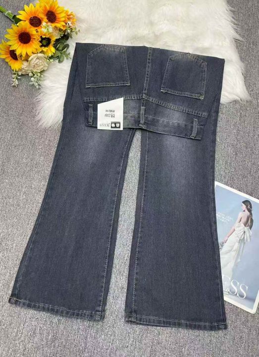 秋冬新款洗水棉网红复古蓝微喇叭牛仔长裤,独立包装带腰卡码数S--XL码,350件左右,全清11.8元超低价秒杀!分货加一!。 货号:1303
