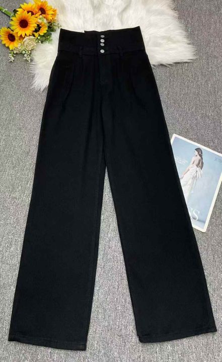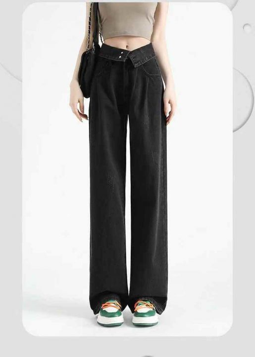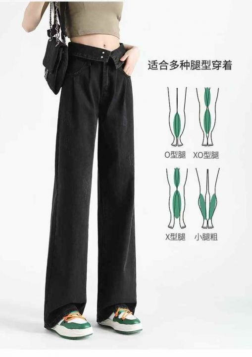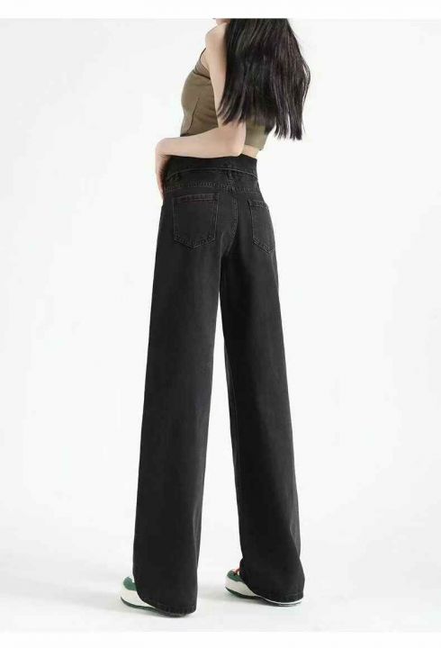 秋冬新款洗水棉网红多扣直筒阔腿牛仔长裤,独立包装带...
