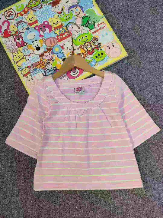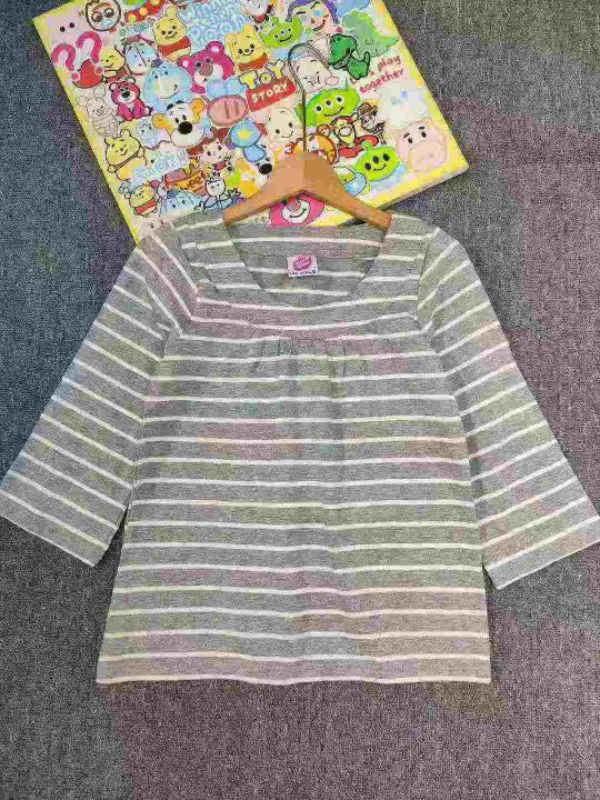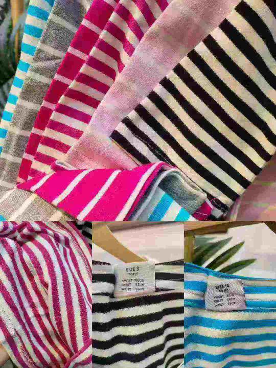 260件童装纯棉中袖条纹T 单款多色 后领包边包条,码数3-14码(100-160身高可穿)货品干净 防水袋装。