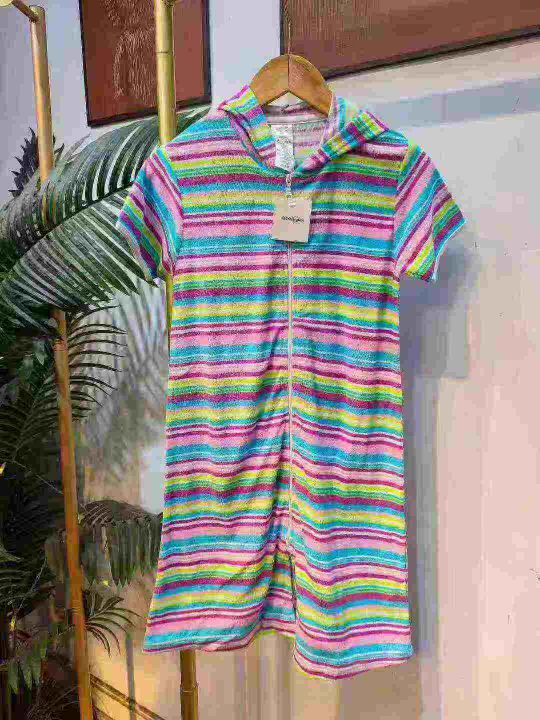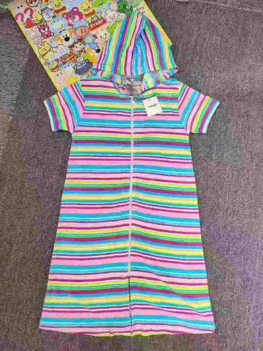 300件外贸品牌夏季中大童连帽拉链T裙 单款单色,码数12/14 16码独立包装。