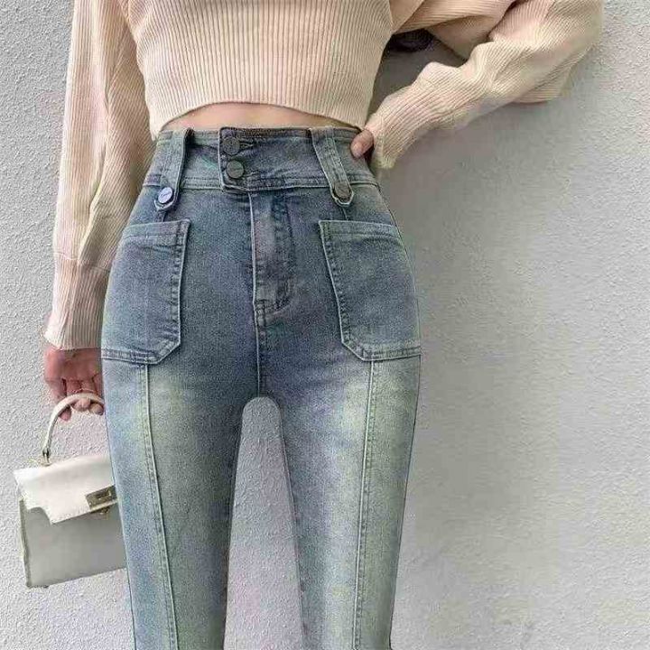 秋冬新款高弹力洗水棉复古网红微喇叭牛仔长裤,独立包...