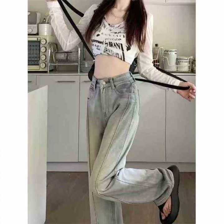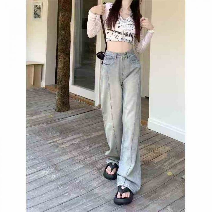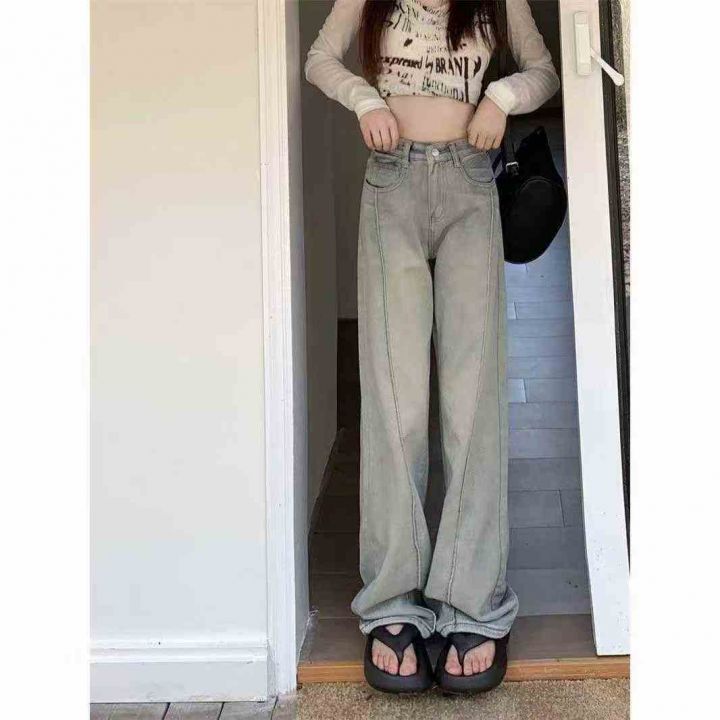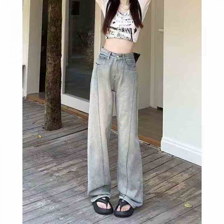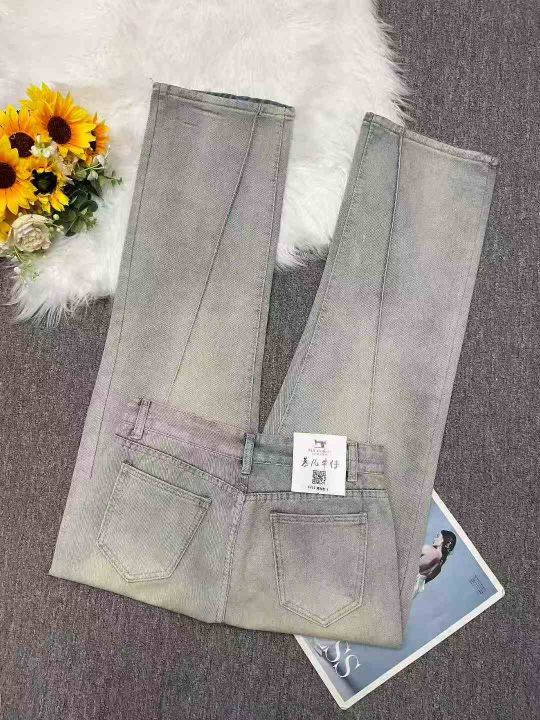 秋冬新款复古网红阔腿洗水棉牛仔长裤,独立包装带腰卡...