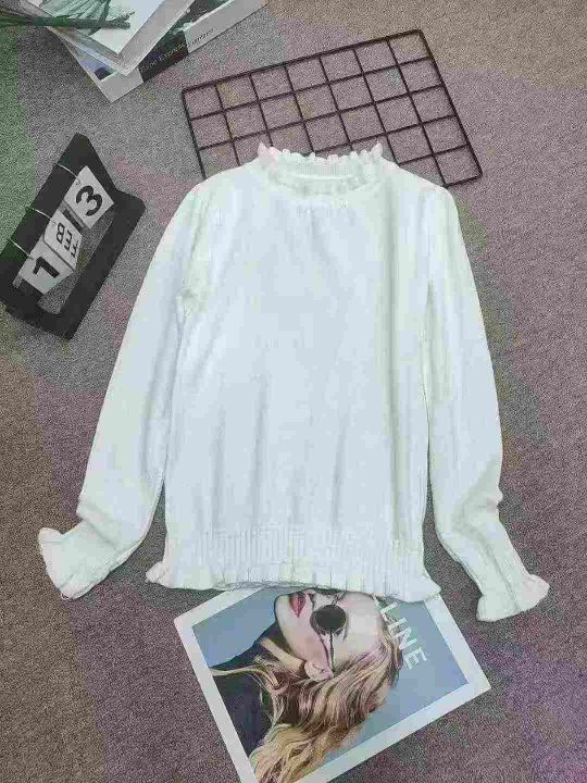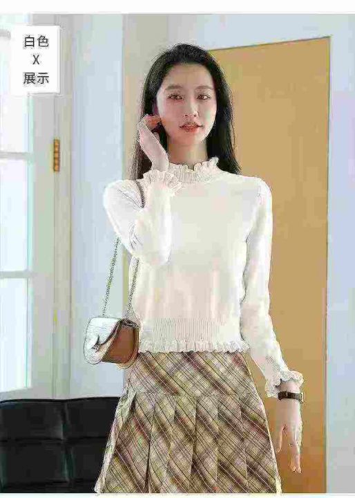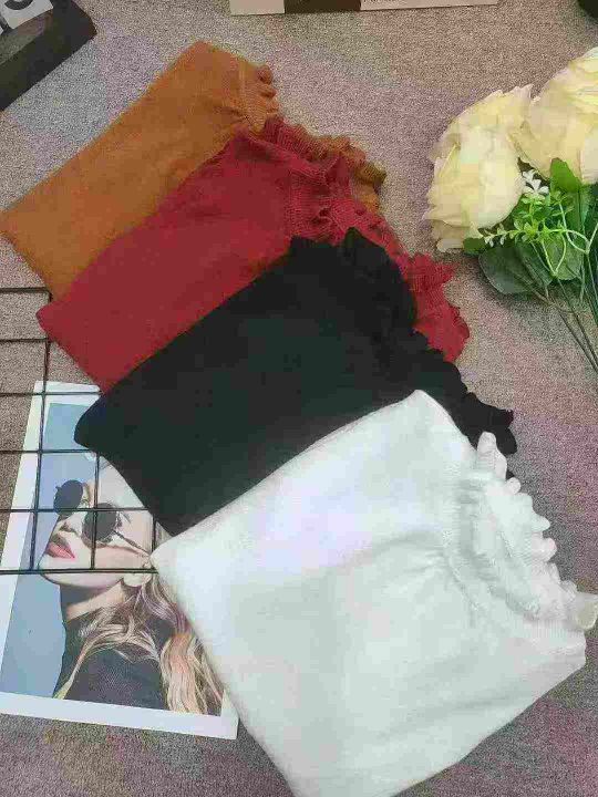 包芯纱收腰木耳边打底毛衣长袖半高领2025年秋冬内搭修身针织毛衫,独立包装,四个颜色,271件,清6.99元,分货加5毛