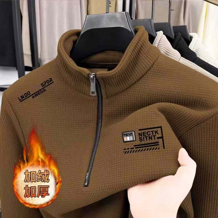 冬季男士半拉链高领保暖打底衫上衣加绒加厚打底衫45件...