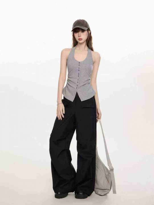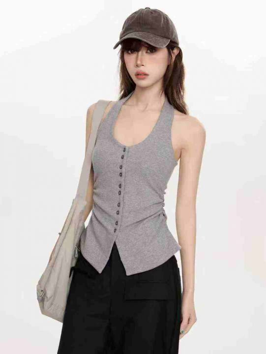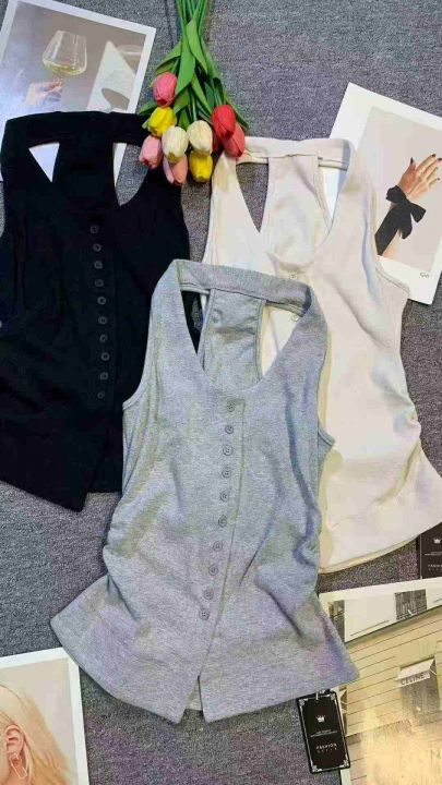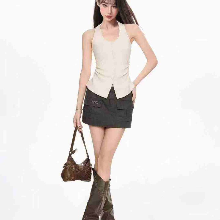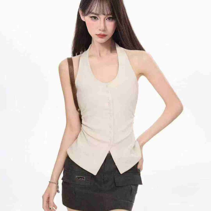辣妹收腰U领挂脖设计感百搭上衣,[爱心]65件左右,款号#1493,码数S-L,穿70-110斤,万佳档口货,原包装️无瑕疵,[666]实体店品质