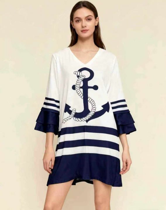 欧美洋气喇叭七分袖印花V领连衣裙 ,领口有包边,品质好,数量 462 条,码数 S-2XL。 有独立包装,全清6.8