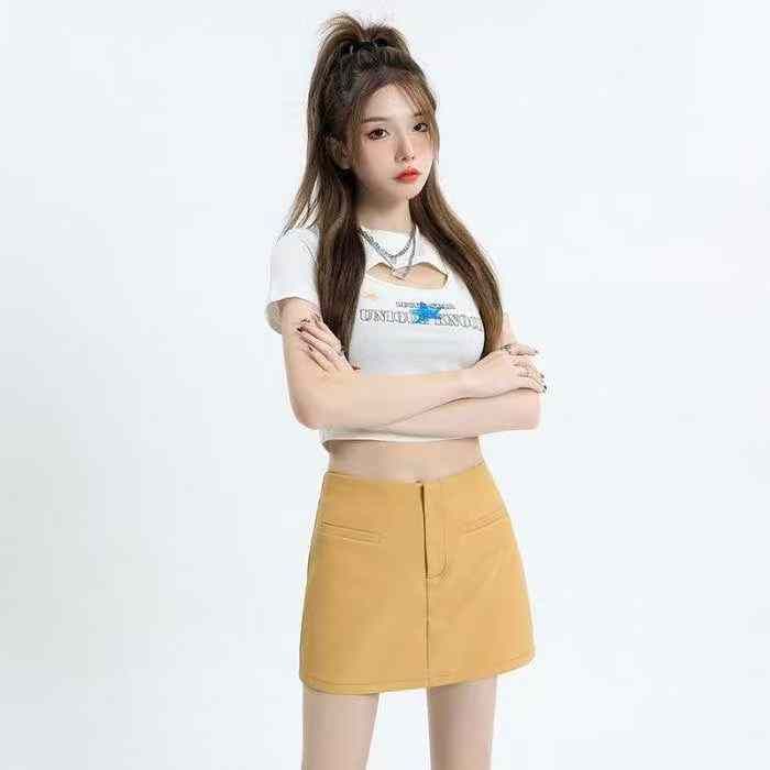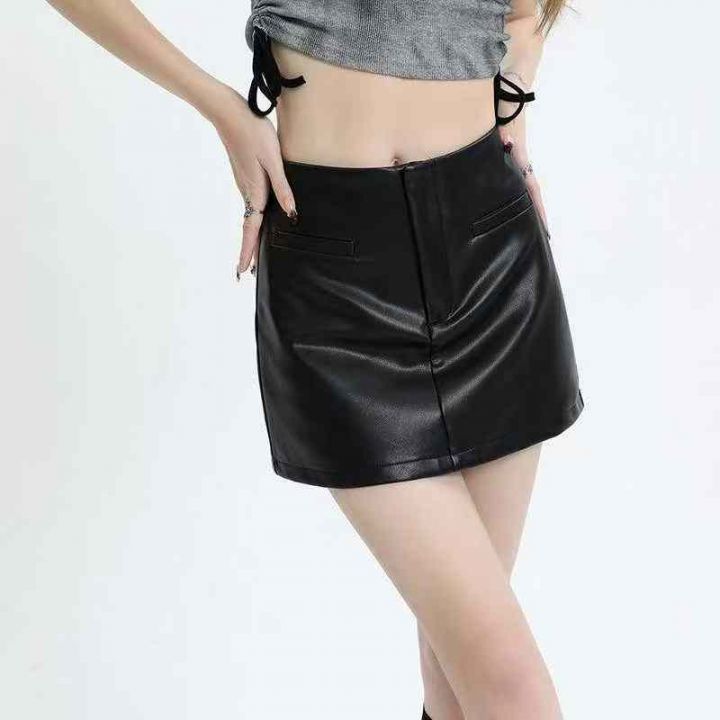 秋季新款哑光PU皮辣妹包臀复古半身皮裙,独立包装带吊...