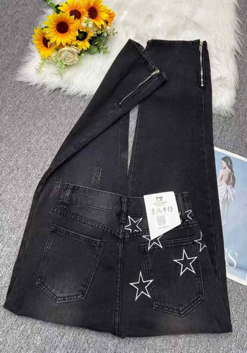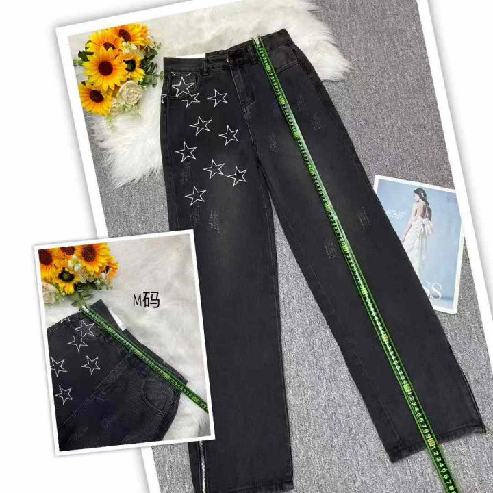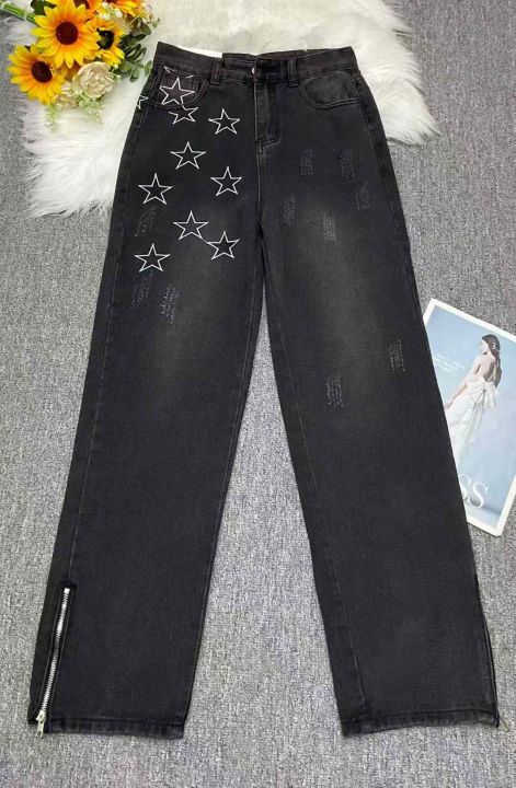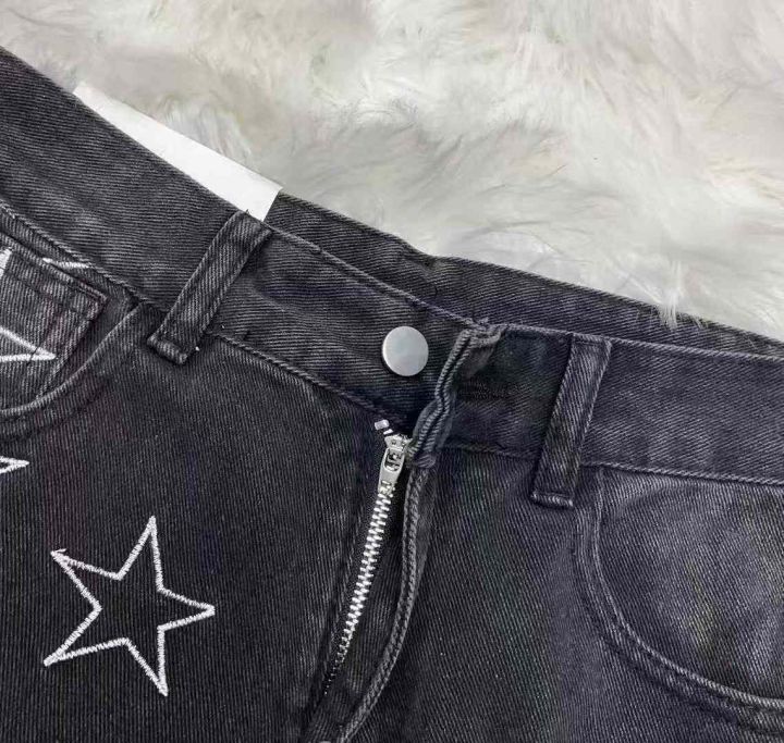秋冬新款美式高街星星刺绣直筒阔腿复古开叉设计感显瘦牛仔长裤,独立包装带腰卡,码数XS—XL码(码数清单看图)210件,全清9.9元超低价秒杀!