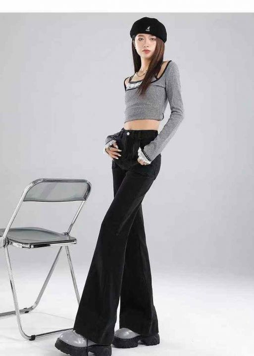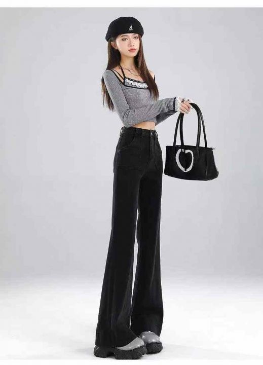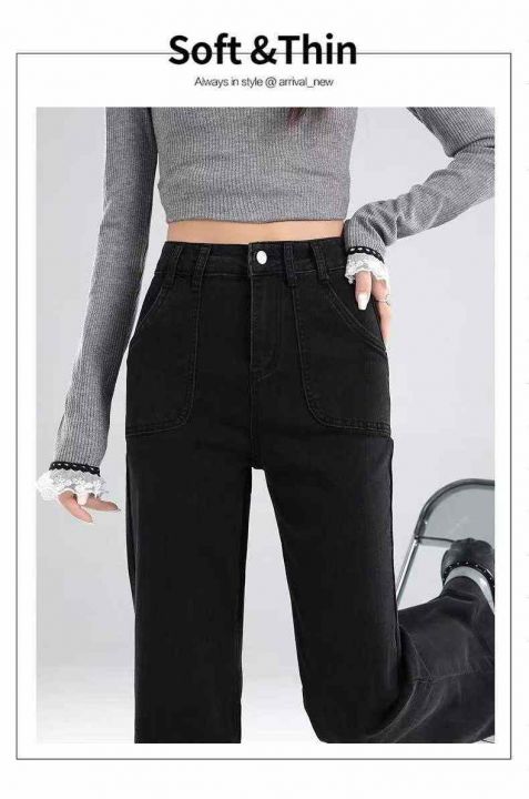 秋季新品洗水棉网红直筒阔腿牛仔长裤,独立包装带腰卡...