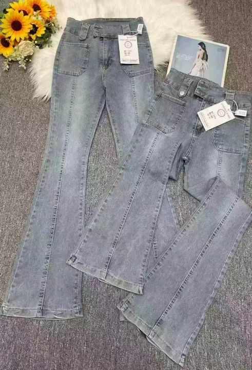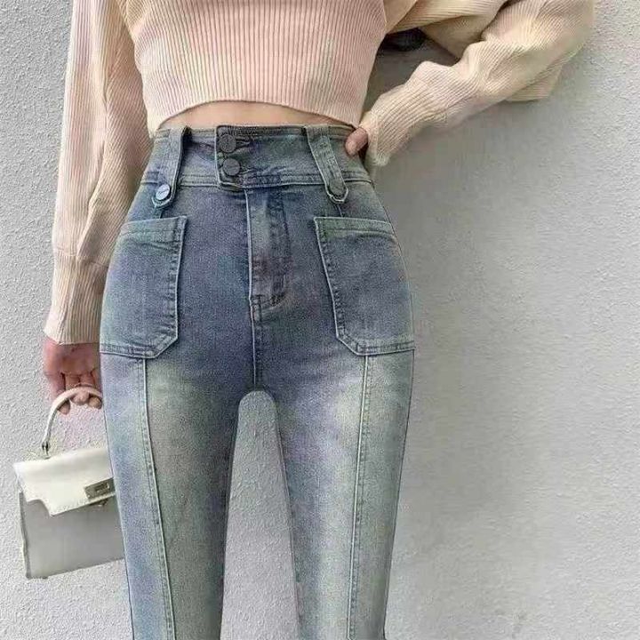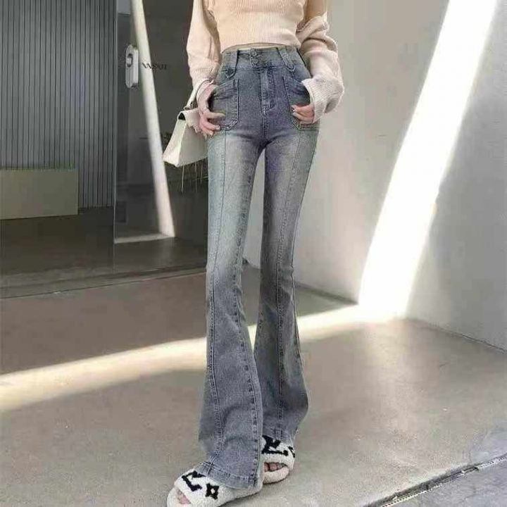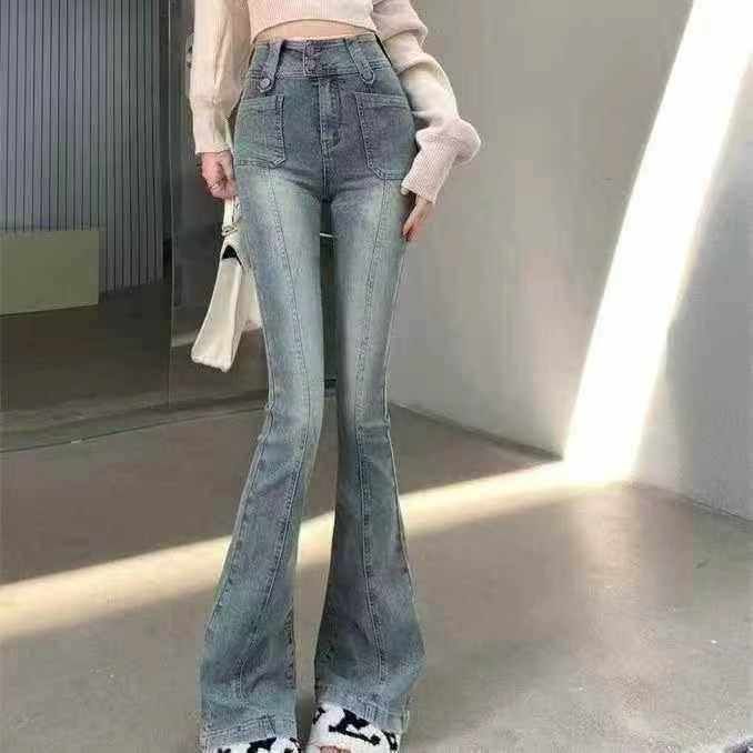 秋冬新款高弹力洗水棉复古网红微喇叭牛仔长裤,独立包...