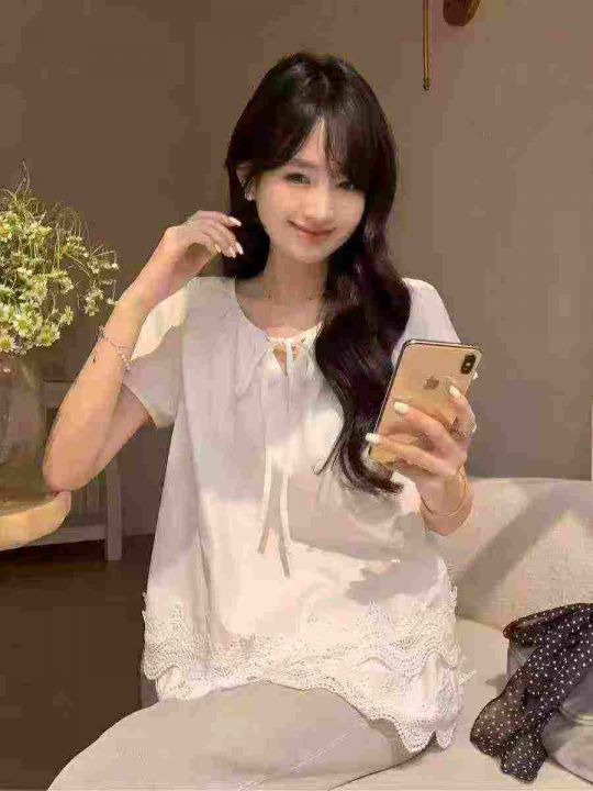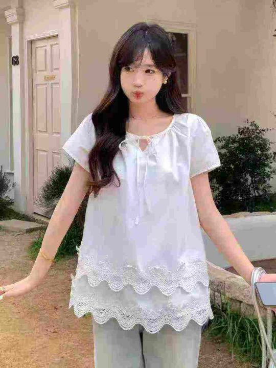 ☕️大码女装胖mm层叠花边蕾丝拼接白色夏季宽松气质显...