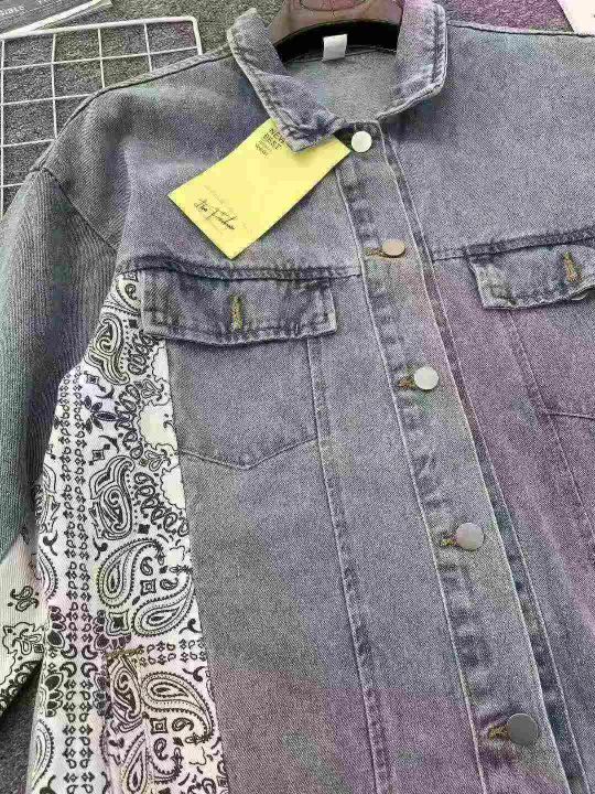 ☕️男女同款牛仔外套1096件全清20元,分货21元,宽松版码数S到XL,精品独立包装,腰果花复古拼接牛仔外套女设计感小众韩版宽松春秋夹克潮。 货号:24862