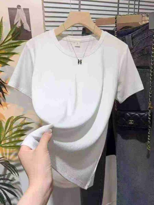 ☕️纯色短袖白色正肩短袖T恤女新款百搭纯棉打底衫宽...