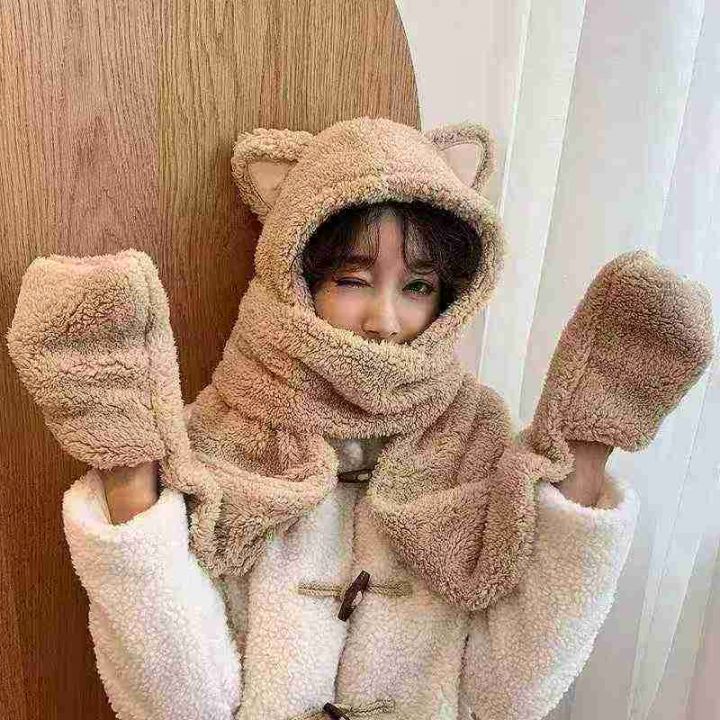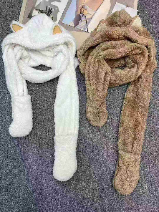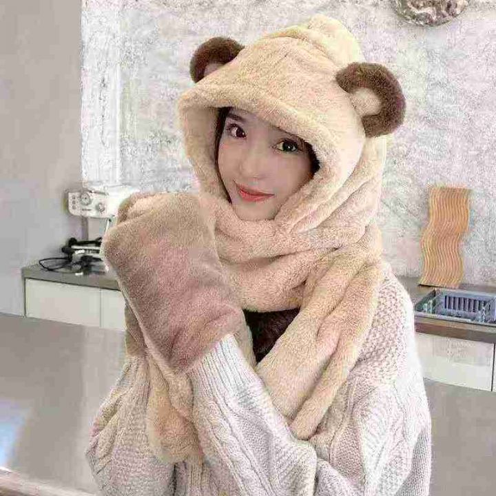 1412 件左右[红包] 秋冬爆款保暖神器,毛绒帽子围巾手套围脖三件套一体,可爱时尚保暖韩版小熊,兔耳,潮麋鹿耳朵,小整带微杂,均码,独立包装,全清 4.5,分货随机配货加一元,