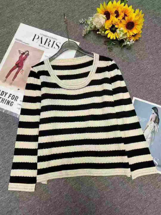 春秋款新品撞色条纹宽松正肩长袖针织衫,独立包装,均码面料柔软舒适,520件,全清6.9元超低价秒杀!分货加一!