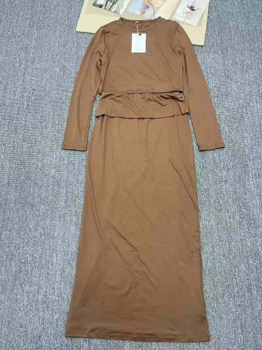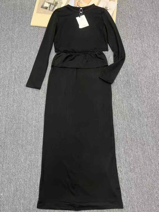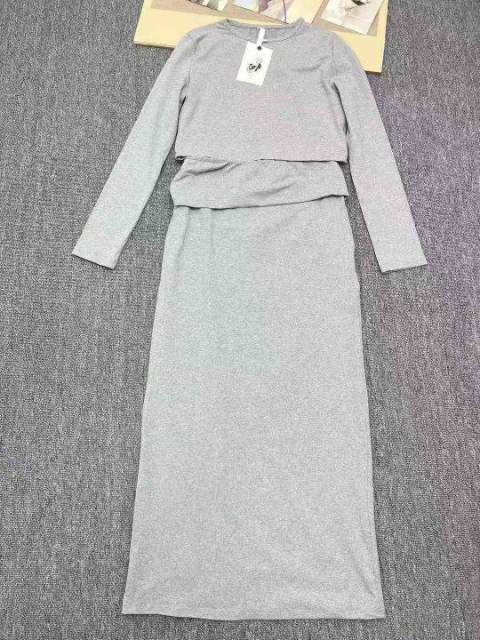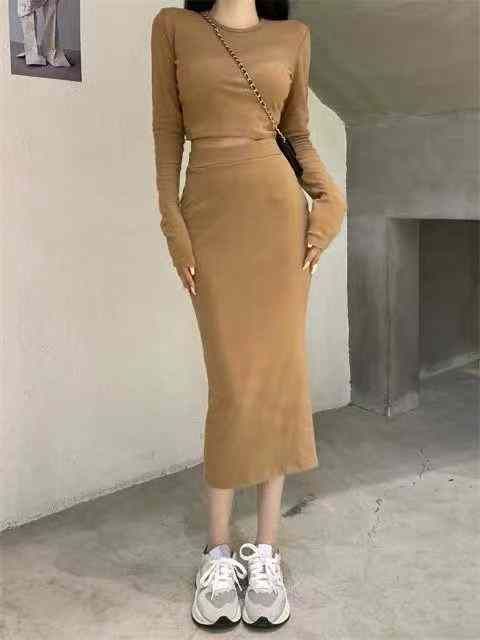 100 套左右[红包] 2025秋季欧美爆款,女装纯欲风性感长袖T恤+高腰中长裙套装,单款三色 S—XL,独立包装有吊牌,全清 7.8,分货加一元