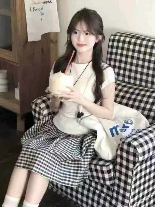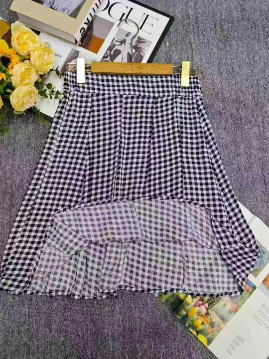 3.5清电商仓回收65件韩系风黑白格子短裙春夏薄款口袋...