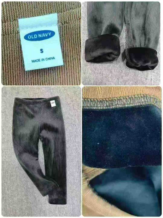 工厂回收1120件高品质金丝绒加婴儿绒童裤,码数S码(相当于数字码90)。墨绿色为主,其他颜色很少,面料柔软舒适有弹力,质量超级好,10条一包装。