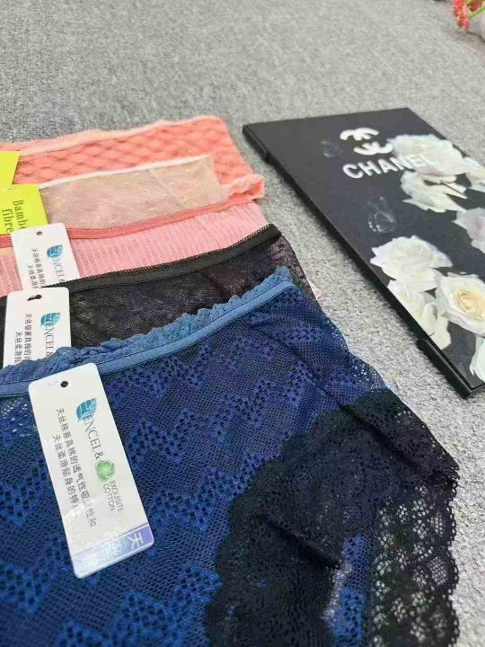 大版系列款蕾丝边女装高腰三角内裤3000件,均码,高弹力,能穿到150斤左右,12条一包装,5包一捆,一捆60条,全清2.38,分货2.68。。 货号:1323